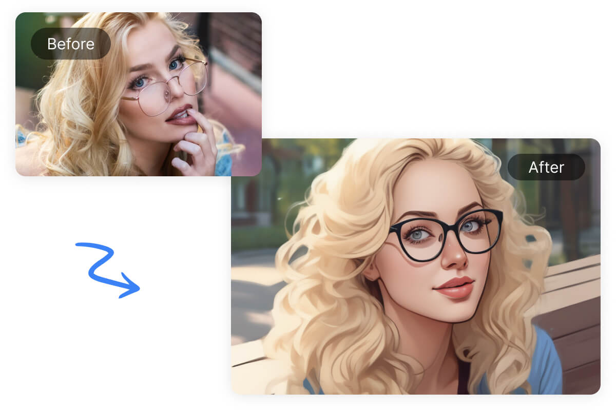 With Magickimg Face2Cartoon, just upload your image, and our artificial intelligence will transform it into lively cartoon art.